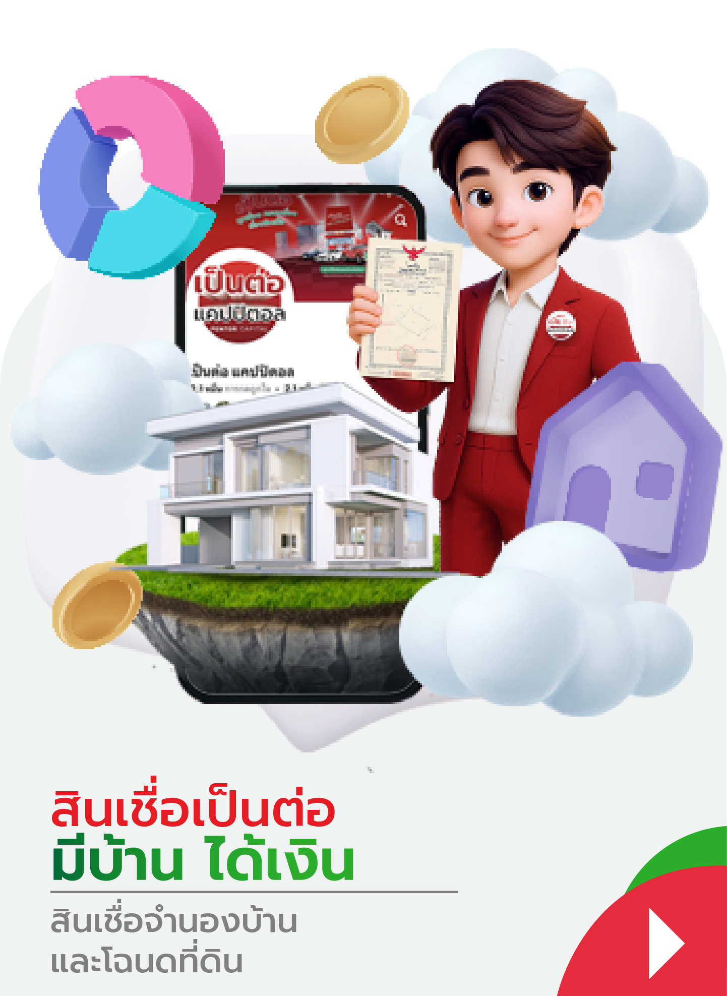 บริษัท เป็นต่อ แคปปิตอล จํากัด ได้ก่อตั้งเมื่อวันที่ 30 ก.ค. 2564 ประกอบกิจการภายใต้การกํากับของธนาคารแห่งประเทศไทย ให้บริการสินเชื่อแบบมีหลักประกัน คือ สินเชื่อจํานองบ้านและโฉนดที่ดิน สินเชื่อจํานําเล่มทะเบียนรถ และสินเชื่อแบบไม่มีหลักประกัน คือ สินเชื่อส่วนบุคคล และสินเชื่อรายย่อยเพื่อการประกอบอาชีพ เราให้บริการสินเชื่อหลากหลายประเภท เพื่อตอบโจทย์ความต้องการและรองรับกลุ่มลูกค้าทุกอาชีพ ภายใต้สโลแกนที่ว่า เป็นต่อทุกเรื่อง ครบเครื่อง เรื่องสินเชื่อ