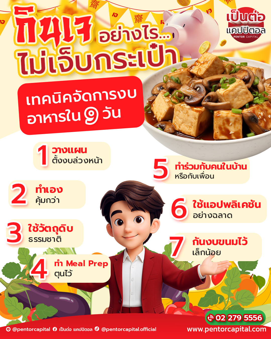 วันนี้ เป็นต่อ แคปปิตอล ขอร่วมส่งต่อเทคนิคการบริหารงบอาหารตลอด 9 วันของเทศกาลกินเจ เพื่อให้ทุกท่านสามารถดูแลทั้งสุขภาพกายและสุขภาพทางการเงินได้อย่างสมดุล